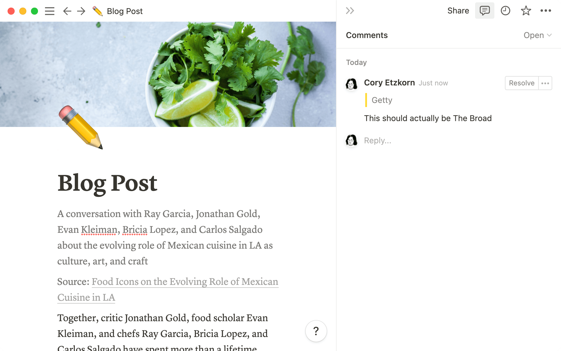 Request feedback from stakeholders, brainstorm quarterly goals, and push projects forward by leaving more visible, easily discoverable comments on your notes & docs.